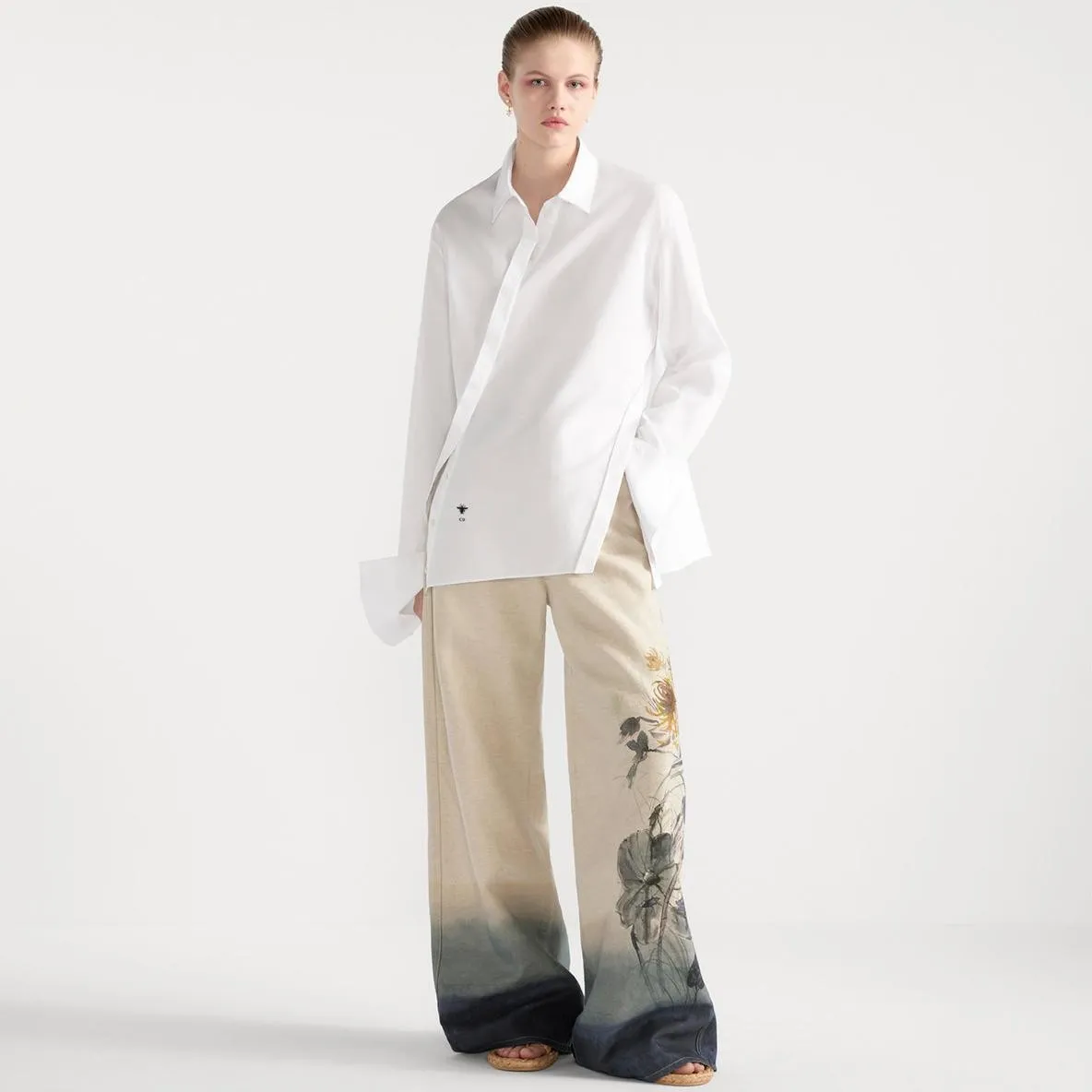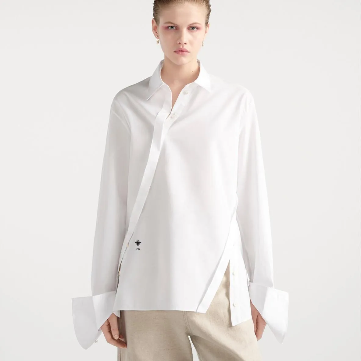Blouse with Oblique Closure White Cotton Poplin