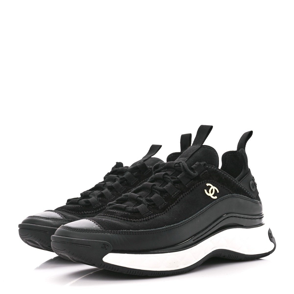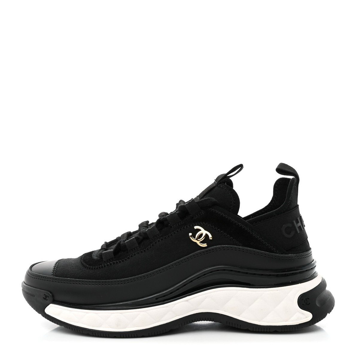 CHANEL Womens Black Velvet Calfskin & Mixed Fibers Sneaker