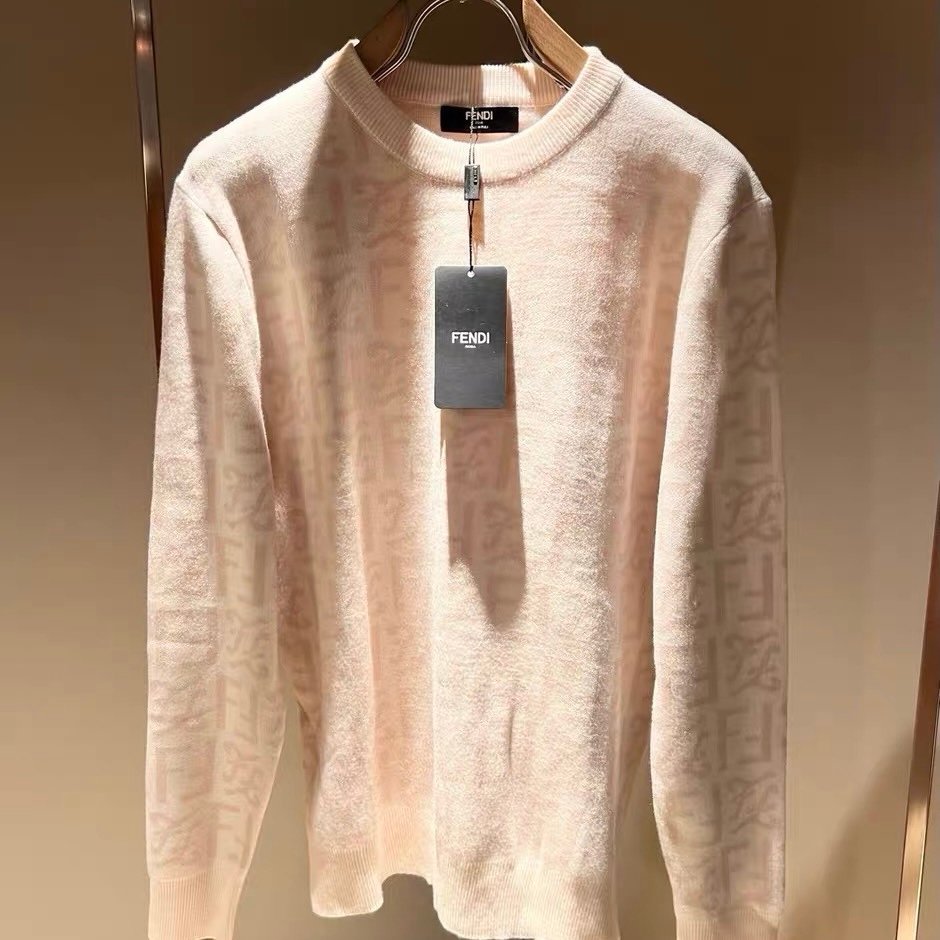 The product in the image is a Fendi FF logo crewneck sweater.