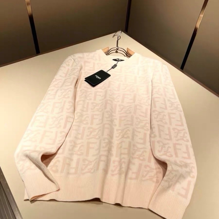 - The sweater features an all-over FF logo pattern.