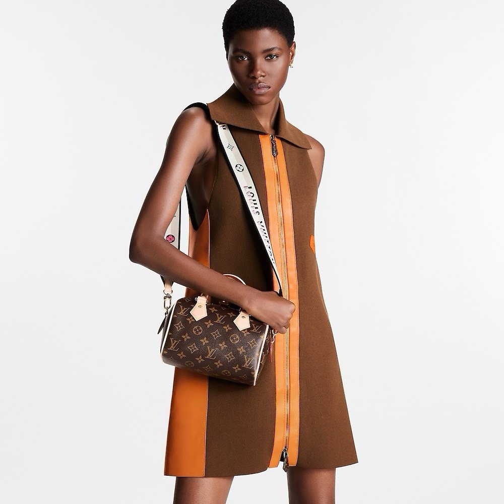 This is a Louis Vuitton Speedy Bandoulière 20 handbag in Monogram canvas.