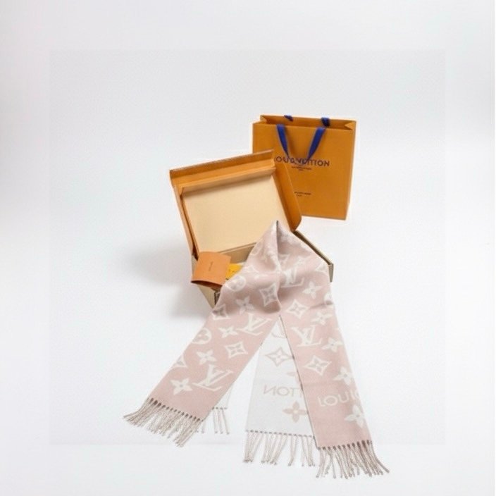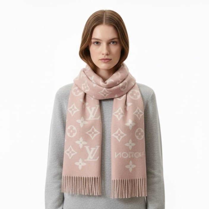 Louis Vuitton LV Essential Scarf or potentially a similar style like the Logomania or Reykjavik, known for their distinct monogram pattern.