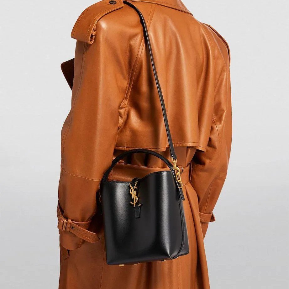 This is a Saint Laurent Le 37 small or mini bucket bag in black leather.